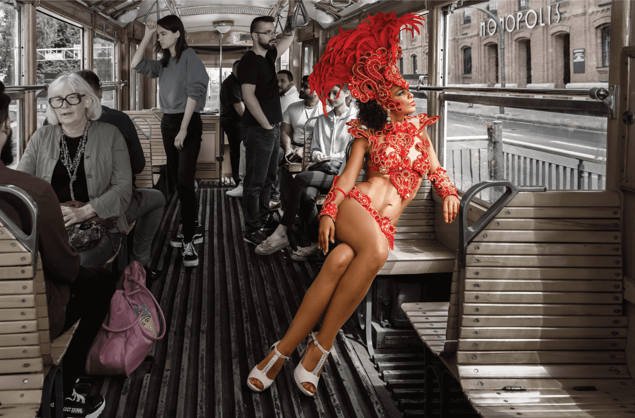 Zgodnie z wizją artystyczną, na zdjęciach uchwycona zostanie brazylijska kultura w zestawieniu z łódzką rzeczywistością. W sesji, która trwała 3 dni, blisko 30 statystów wspierało na planie 2 modeli z Brazylii i 4 modelki z Kolumbii, USA i Polski. Na planie zdjęciowym, królowały pióra, kostiumy tancerek samby, niecodzienne nakrycia głowy i oczywiście gorący klimat. Co warto podkreślić w zdjęcia zaangażowana była wielka „rodzina” Monopolis, czyli: Anna Rubaj, Michał i Kamila Przybysz oraz Francesco Mameli. Ekipa pracowała głównie w Monopolis, ale w Kalendarzu Virako pojawią się także miejskie lokacje: Księży Młyn i okolice Parku Źródliska. Nie mogło zabraknąć też zabytkowego tramwaju z początku lat 60-tych.