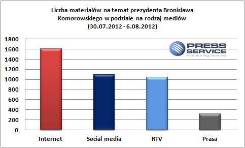 Upływające właśnie 24 miesiące prezydentury zaowocowały liczbą ponad 300 000 informacji (!). Najbardziej aktywnie osobą Bronisława Komorowskiego interesowały się media internetowe, publikując ponad 234 000 materiałów.