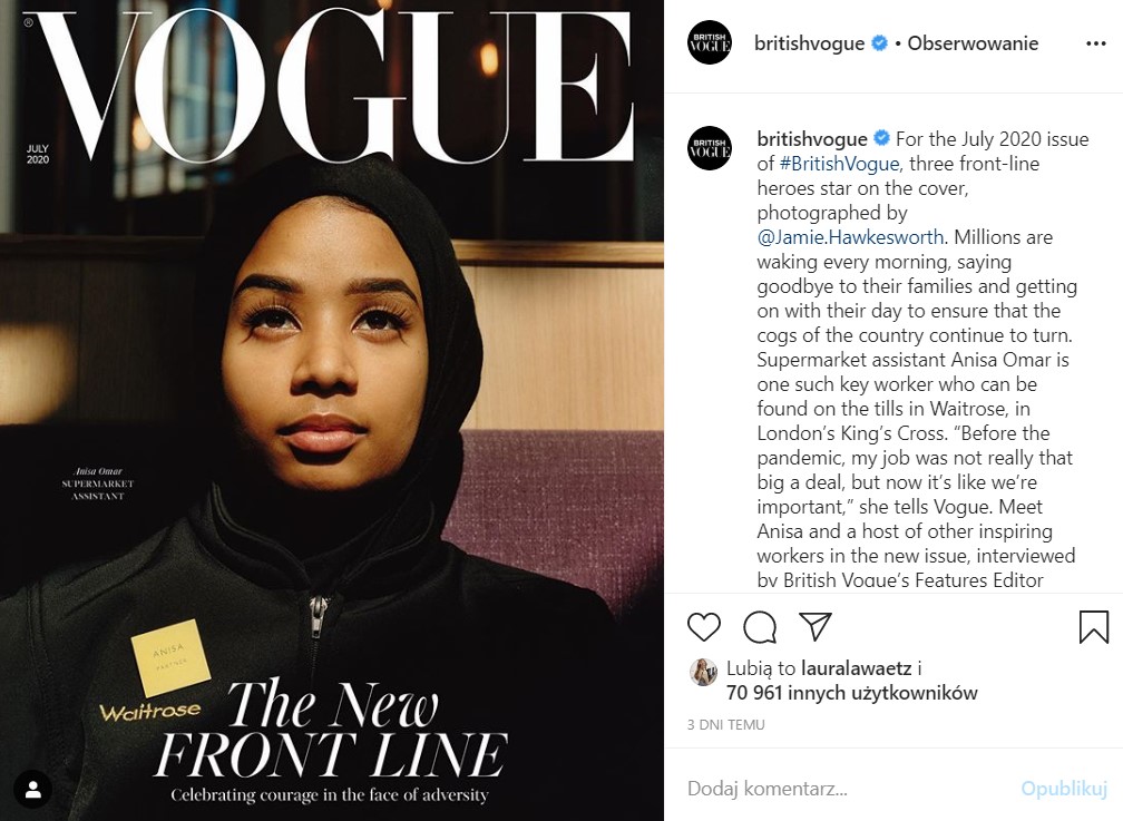 Na okładce pojawiła się również Anisa Omar – 21-letnia sprzedawczyni w popularnej brytyjskiej sieci supermarketów Waitrose.