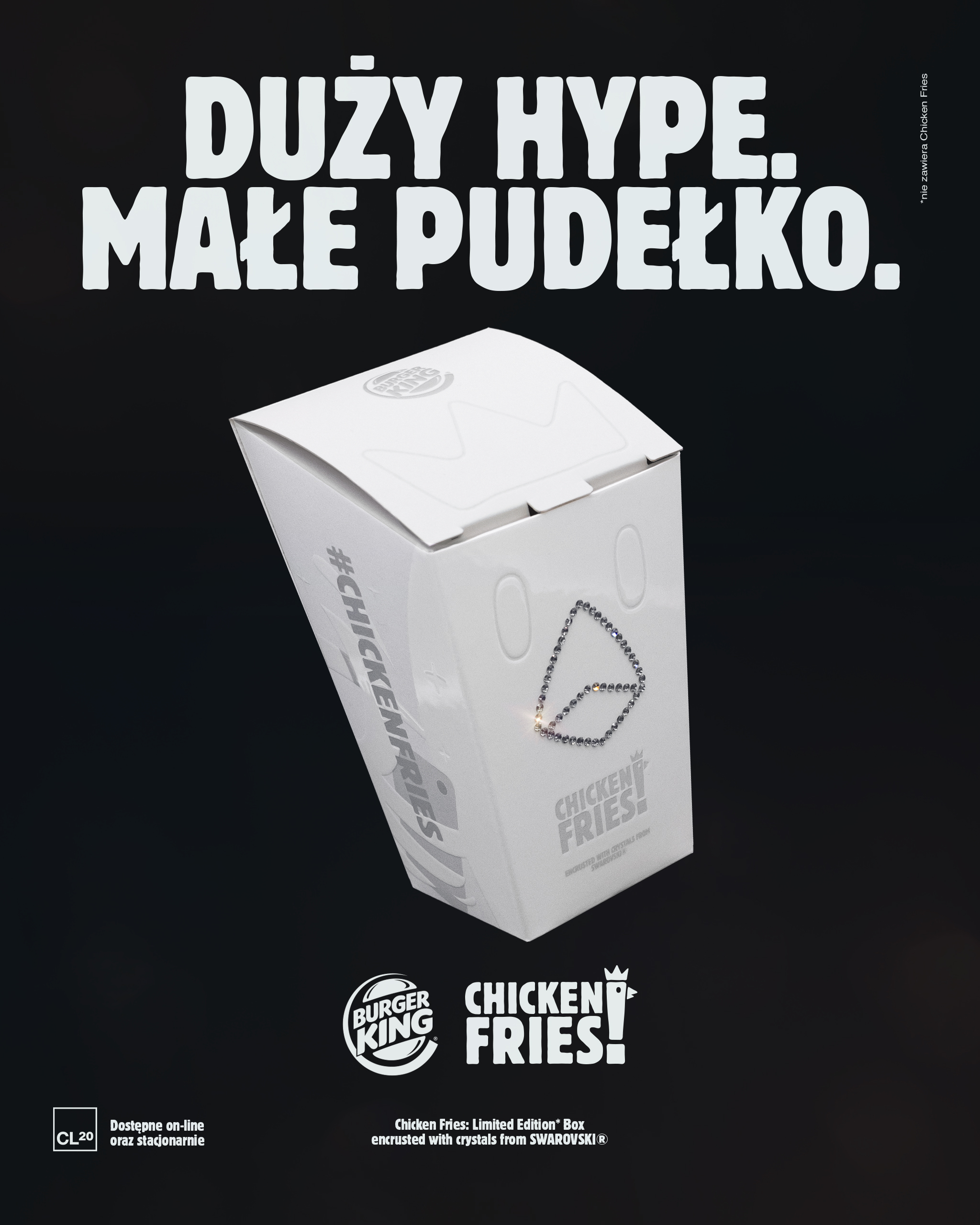 Akcję promować będzie sesja zdjęciowa wykonana przy współpracy Burger Kinga oraz CL20, w której pudełko na Chicken Fries otoczone jest przez równie pożądane przedmioty ze świata mody, a także influencerzy, słynący z zamiłowania do wyjątkowych i limitowanych przedmiotów. Ponadto na kanałach social media marki Burger King ruszy konkurs, w którym będzie można wygrać limitowane opakowanie.