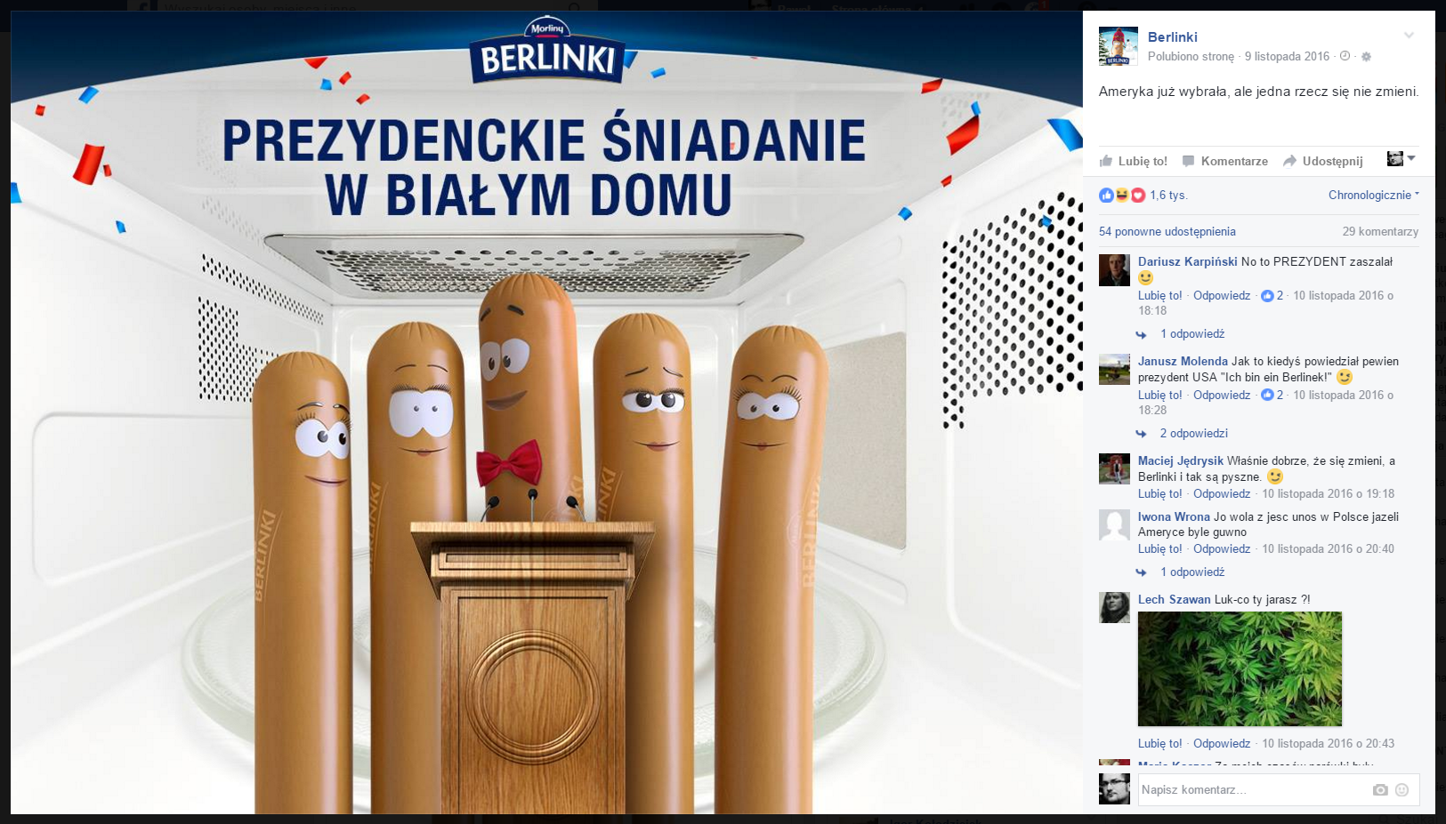 Znowu – dobrze wykorzystany moment i reakcje, komentarze i udostępnienia możemy liczyć w tysiącach.
