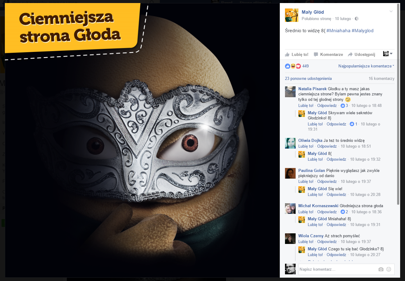 Kolejny przykład. Tym razem jest to fanpage Mały Głód. Podczas gdy w kinach szaleje Ciemniejsza strona Greya, Mały Głód publikuje coś takiego:
