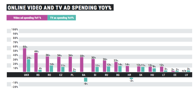 Pomiędzy poszczególnymi rynkami w regionie (również) występują olbrzymie różnice. Miliony Ukraińców oglądało wiadomości podczas EuroMajdanu w 2013 r. oraz relacje z rewolucji ukraińskiej w 2014 r. za pośrednictwem internetowych, streamingowych kanałów video, a serwis informacyjny wideo Hromadske.ua stał się największym kanałem w historii YouTube – pod względem całkowitego czasu odtwarzania. Kontekst społeczno-polityczny sprawia, iż segment wideo online na Ukrainie jest szczególnie rozwinięty, na co wskazuje również jego niespotykane tempo wzrostu.