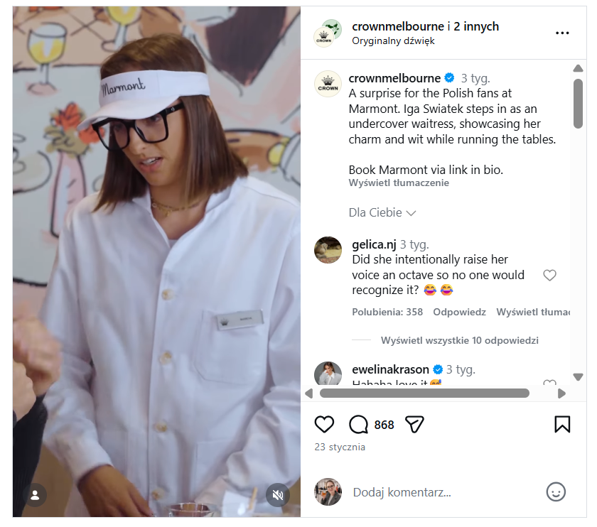 Pamiętacie Igę Świątek w roli kelnerki? Krótkie wideo z najlepszą polską tenisistką obsługującą gości jednej z australijskich restauracji szybko stało się viralem, zyskując tysiące wyświetleń i pozytywnych reakcji. Teraz przyszedł czas na kolejne odsłony akcji „Expect the Unexpected”, którą dla australijskiej firmy Crown Resorts opracowała agencja HERO.