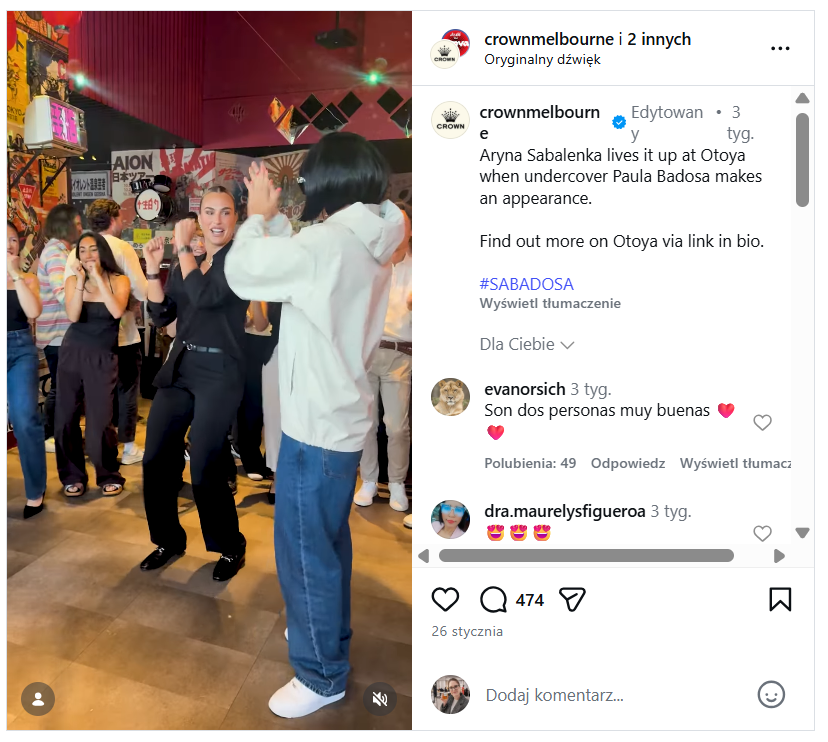 - Aryna Sabalenka i Paula Badosa bawiące się w klubie Otoya