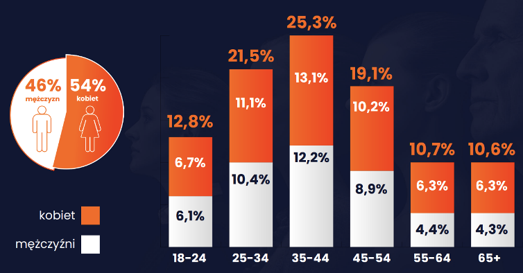 Według raportu Ceneo najliczniejszą grupę kupujących online stanowią osoby w wieku 35-44 lata, wśród których dominują kobiety.