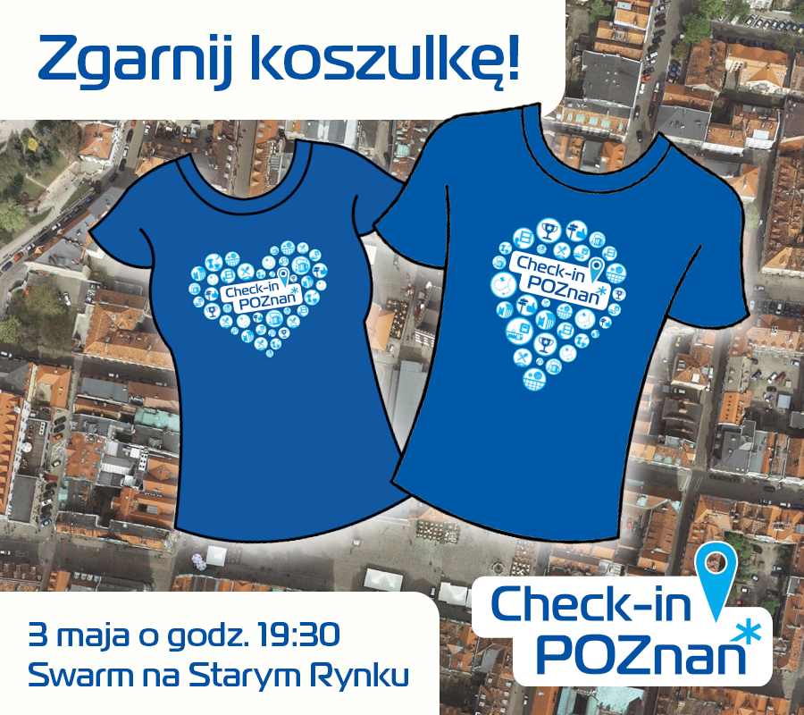 Kulminacyjnym momentem gry “Check-in Poznań” będzie “Swarm na Starym Rynku”, czyli tłumny check-in, w którym udział może wziąć nawet kilkaset osób! Każdy kto zamelduje się w tym czasie na płycie poznańskiego Rynku zostanie nagrodzony dedykowaną koszulką akcji oraz bonusowymi punktami w rankingu gry. Organizatorzy mają zamiar pobić zeszłoroczny rekord 178 check-inów, czyli zameldowań w jednym miejscu i czasie.