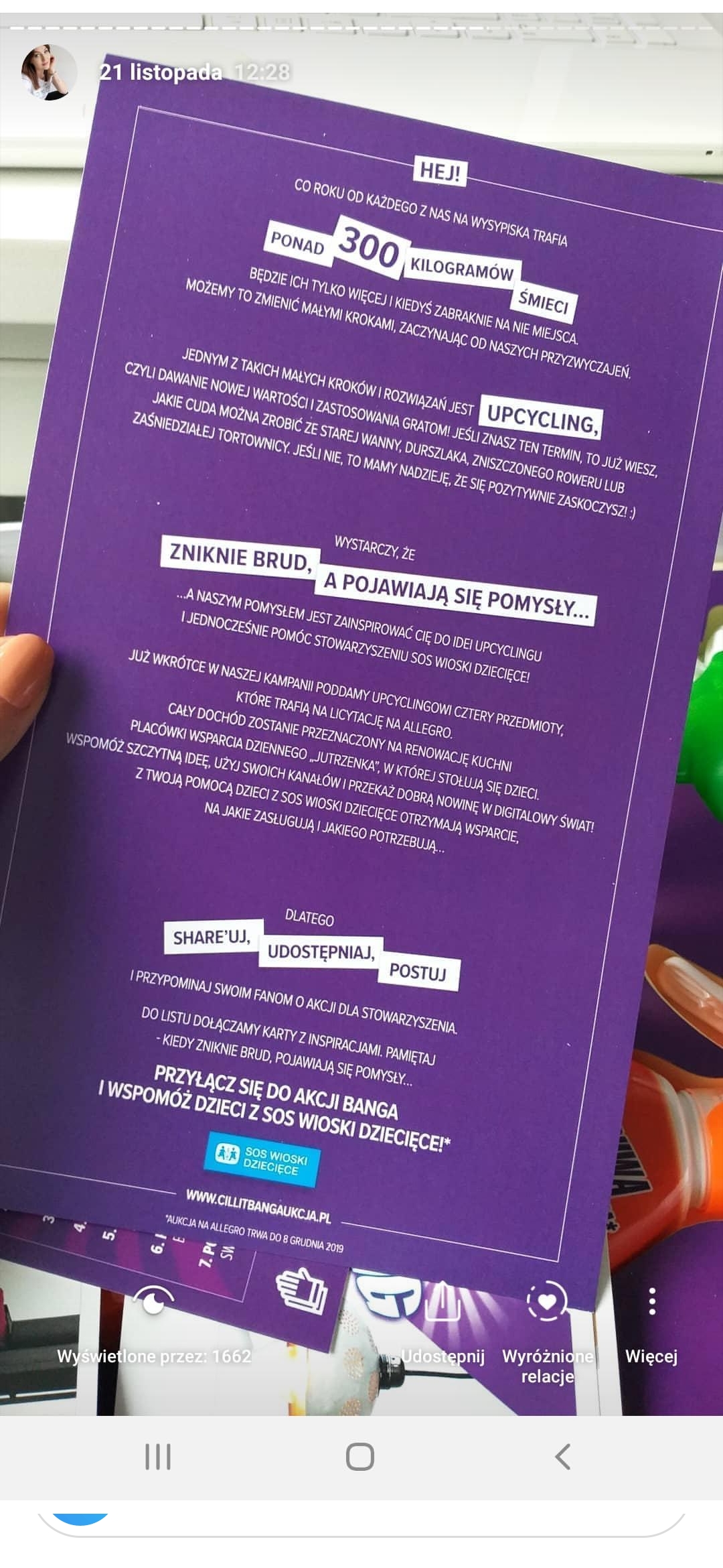 Ponadto wchodząc na cillitbangaukcja.pl możemy kupić przerobione przez niego przedmioty i wesprzeć szczytny cel. Dochody z aukcji prowadzonej wspólnie przez Cillit Bang i Allegro Charytatywni zostaną przeznaczone na wsparcie Stowarzyszenia SOS Wioski Dziecięce.