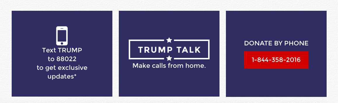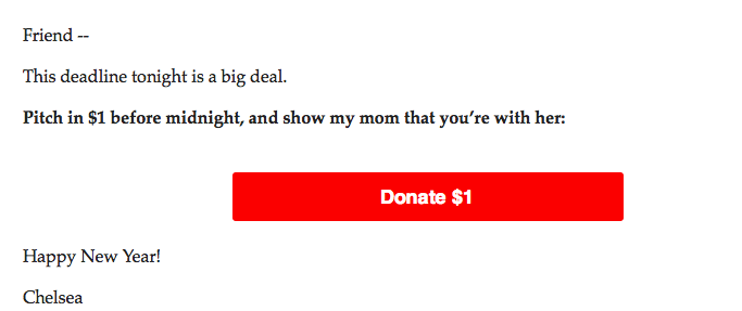 Newslettery kandydatów nie okazały się jednak designerskim majstersztykiem – ich sztaby wyborcze zdecydowanie postawiły na prostotę i nie przygotowały szablonu, który pozwoliłby na szybką identyfikację wizualną polityków. Większość e-maili od Trumpa i Clinton to wiadomości tekstowe, które znowu – ze względu na specyficzny charakter amerykańskich wyborów – zachęcały przede wszystkim do wsparcia kampanii finansowo. Na tle haseł argumentujących, dlaczego warto przeznaczyć kilka dolarów na wsparcie kampanii, wyróżniały się przyciski z wezwaniem do działania (Call to action, CTA), przekonujące do wykonania przelewu. W niektórych wiadomościach takich przycisków było kilka, każdy sugerujący inną kwotę.