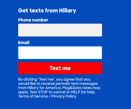 Ryc. Formularz zapisu do kampanii SMS Hillary Clinton