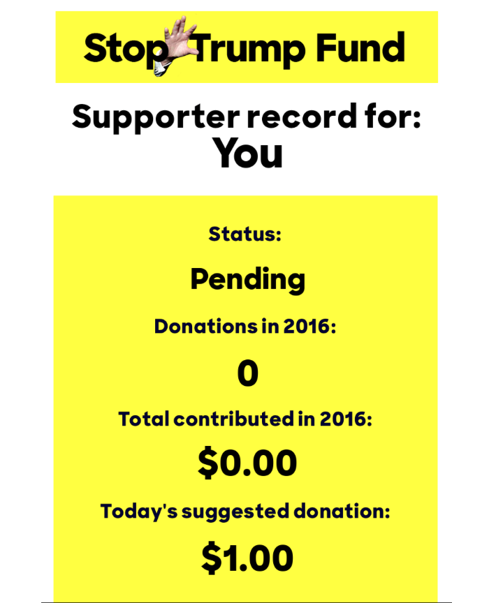 Na tym tle strona do wypisu z kampanii Trumpa prezentuje się dość prosto i treściwie: