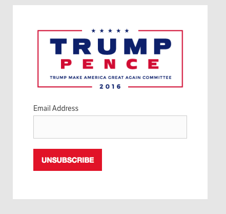 Jednak znalezienie formularza zapisu na oficjalnej stronie kandydatki Demokratów nie należało do najłatwiejszych. Możliwość dołączenia do subskrypcji nie znajdowała się na jej stronie głównej, ale ukryto ją na kolejnych podstronach serwisu Hillary for America. To zdecydowanie utrudniało dołączenie do społeczności i wymagało od potencjalnego odbiorcy zaangażowania i przede wszystkim, chęci odszukania formularza. Łatwiejsze było natomiast znalezienie formularza na stronie Donalda Trumpa, który umieścił go w widocznym miejscu na stronie głównej i już od wejścia na witrynę zachęcał odbiorców do dołączenia do subskrypcji.