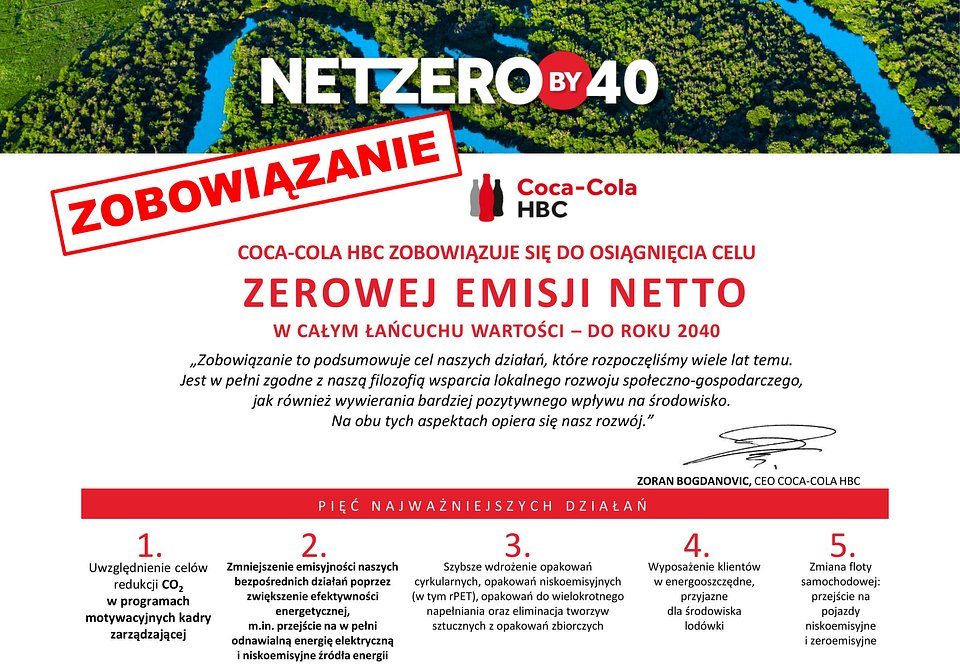 – Zobowiązanie to podsumowuje cel naszych działań, które rozpoczęliśmy wiele lat temu. Jest w pełni zgodne z naszą filozofią wsparcia lokalnego rozwoju społeczno-gospodarczego, jak również wywierania bardziej pozytywnego wpływu na środowisko. Na obu tych aspektach opiera się nasz rozwój – podkreślił Zoran Bogdanovic, CEO Coca-Cola HBC. – Choć nie znamy jeszcze wszystkich odpowiedzi, nasz plan, dotychczasowe osiągnięcia i filozofia partnerstwa dają nam pewność, że uda nam się zrealizować nasze cele.