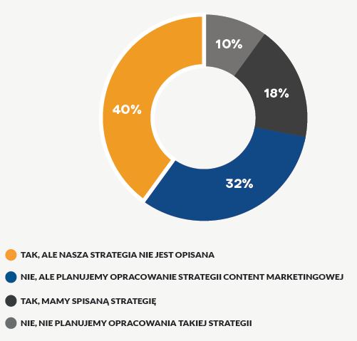 Ciekawa obserwacja dotyczy tego, jak producenci planują i rozliczają działania content marketingowe oraz kto jest odpowiedzialny za ich realizację. Okazuje się, że blisko 60% firm powierza te obowiązki specjalistom ze swojej organizacji. Bolączką jest temat strategii contentowej – tylko 18% firm deklaruje, że posiada ją w formie spisanego dokumentu. Trudno się zatem dziwić, że rozliczenia działań content marketingowych nie są powszechne – w opracowanej strategii znaleźć powinny się między innymi sposoby mierzenia efektywności podejmowanych inicjatyw. W tym kontekście zaskakiwać może fakt, że jednocześnie ponad połowa badanych firm planuje w 2019 roku zwiększyć budżet na marketing treści. Wnioskować zatem można, że marketerzy dostrzegają korzyści płynące z content marketingu, ale wiedzy, jak przełożyć je na KPI – jeszcze brakuje.