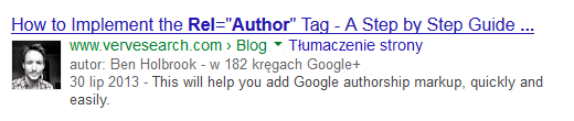 Celem Google jest powiązanie treści z jej autorem, niezależnie w jakim serwisie ją publikuje. Autor buduje swój autorytet pisząc popularne i angażujące treści. Sposobem na powiązanie twórcy z poszczególnymi artykułami jest profil Google Plus. Połączenie tworzymy za pomocą odpowiedniego tagu (rel=„author”).