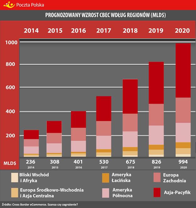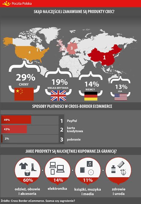 Szansa czy zagrożenie?” – opracowanego przez Pocztę Polską pod patronatem Izby Gospodarki Elektronicznej, rynek cross-border w e-commerce zdominowały takie rynki jak Chiny, Wielka Brytania, Niemcy czy Stany Zjednoczone. To właśnie sklepy w tych państwach są najchętniej wybierane przez globalnego konsumenta.