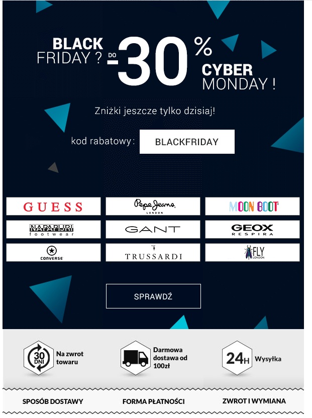 Większość sklepów rozpoczyna akcję wyprzedażową już w Black Friday i kontynuuje te same promocje do Cyber Monday. Oczywiście są także takie, które w poniedziałek chcą przyciągnąć tych klientów, którzy nie dokonali zakupu w weekend. Wówczas na Cyber Monday możemy napotkać na jeszcze większe rabaty lub całkowicie nowe promocje.