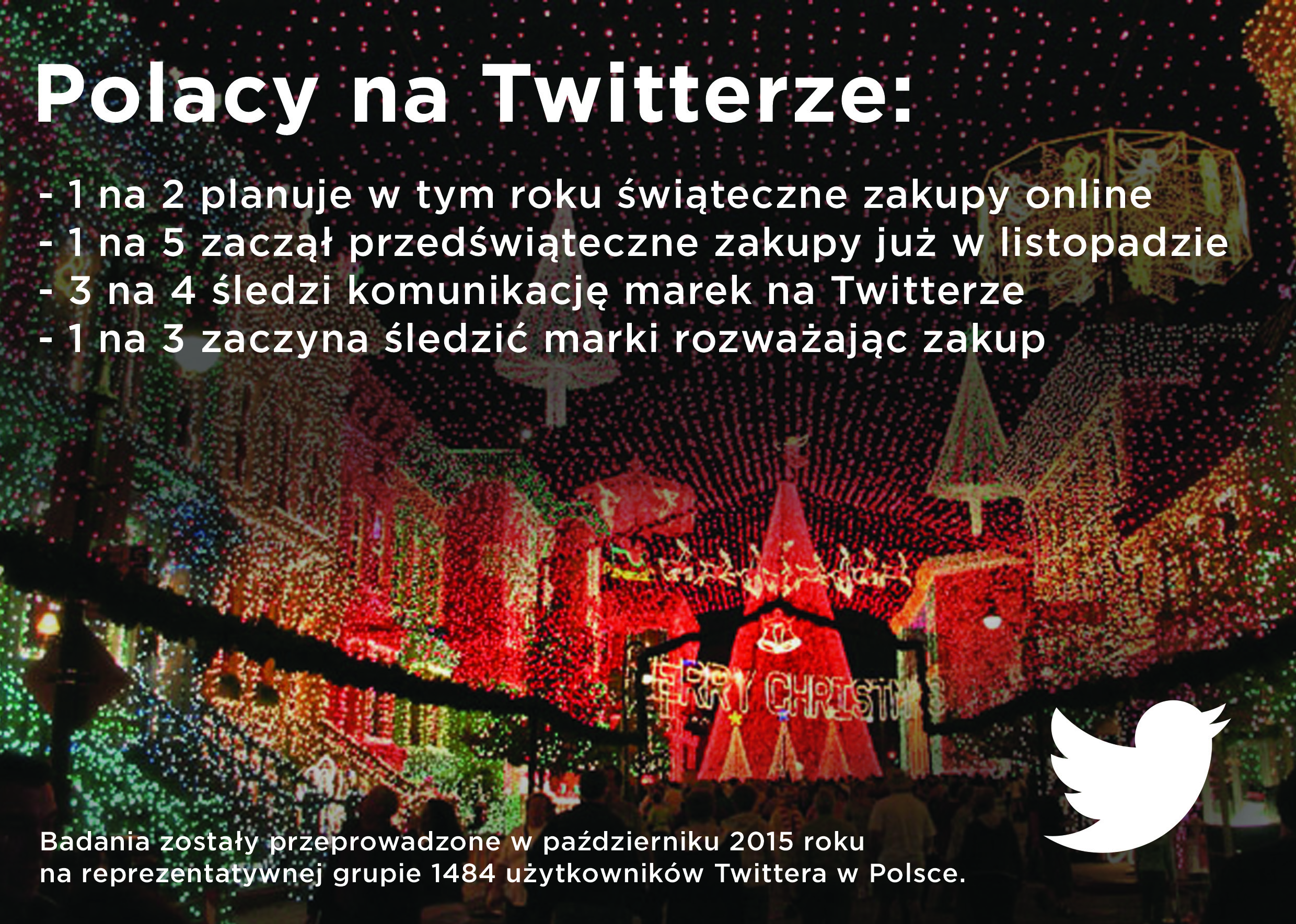 Użytkownicy Twittera w Polsce to ważna grupa docelowa reklamy. 73 proc. z nich deklaruje, że lubi poznawać nowe produkty i marki. Jednocześnie, konsumenci korzystający z tego medium są pewni swojej sytuacji finansowej – wielu z nich przyznaje się, że robiąc codzienne zakupy nie planuje budżetu. Bardziej roztropni są kupując prezenty świąteczne – 60 proc. z nich zwraca uwagę na cenę. Jednocześnie jednak konsumenci uważają wysoką jakość za cechę produktu decydującą o wyborze, a co piąty planuje podarować bliskim produkty z wyższej półki, niż kupuje na co dzień. Najczęściej poszukiwane prezenty to odzież, akcesoria i biżuteria, kosmetyki, filmy, muzyka i gry oraz elektronika.