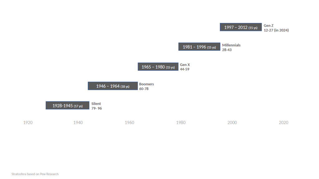 Tym samym pozwala ona na dogłębniejsze spojrzenie na daną generację niż rzucenie zwykłego „zetki”, „millenialsi”, czy „boomerzy”. Bo, jak się okazuje – stoi za nimi coś więcej, niż tylko PESEL, ale musisz też wiedzieć, co to dokładnie jest.