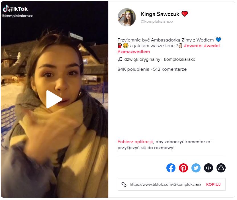 Czy marketerzy powinni mocniej wejść ze swoją reklamą na TikToka? Ze sprzedażowego punktu widzenia na pewno tak, jeśli ich produkt odpowiada grupie docelowej i są w stanie “wejść” w tę platformę na tyle, aby z młodymi twórcami wymyślać odpowiednie dla tego targetu kampanie. Osobiście najbardziej martwi mnie charakter samej aplikacji, która wykorzystuje emocjonalne zaangażowanie najmłodszych obserwatorów, a także hołduje konsumpcyjnemu stylowi życia. Co mam na myśli? Na TikToku wszystko jest na sprzedaż – twórcy z dużymi zasięgami codziennie pokazują, że dzięki nowym fajnym ubraniom, telefonom, gadżetom i drogim podróżom mogą być lepszą wersją siebie. Sami zresztą w wywiadach przyznają, że kariera na TikToku dała im większą pewność siebie i popularność, która ich cieszy. Kto zatem wśród młodych i jeszcze nieco naiwnych ludzi nie chciałby być jak oni? Oczywiście zdaję sobie sprawę, że “biznes to biznes” i nie ma tu miejsca na sentymenty – jeśli można tę naiwność wykorzystać w sprzedaży to właśnie to się to robi.