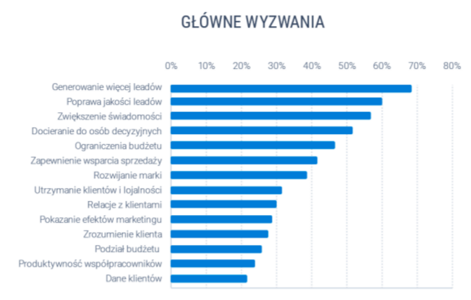 Główne wyzwania w procesie generowania leadów (źródło: Skuteczne metody generowania leadów. CallPage)