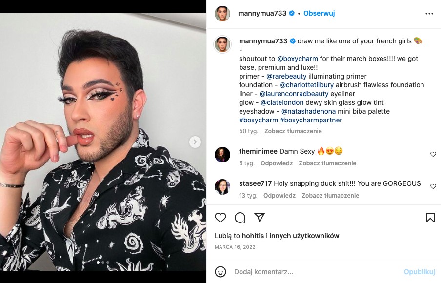 Mężczyzna i makijaż to słowa, które w dzisiejszych czasach zdecydowanie się nie wykluczają. Najlepszym na to dowodem są współcześni beauty influencerzy – mężczyźni publikujący w social mediach treści związane m.in. z kosmetykami. Wysoka popularność tych osób, sięgająca nawet kilku milionów followersów sprawia, że marki kosmetyczne chętnie nawiązują z nimi współprace. Nie potrzeba zatem spotów reklamowych wymagających ogromnych kosztów – wystarczy znaleźć adekwatnego influencera, a ten odpowiednio zareklamuje produkt.