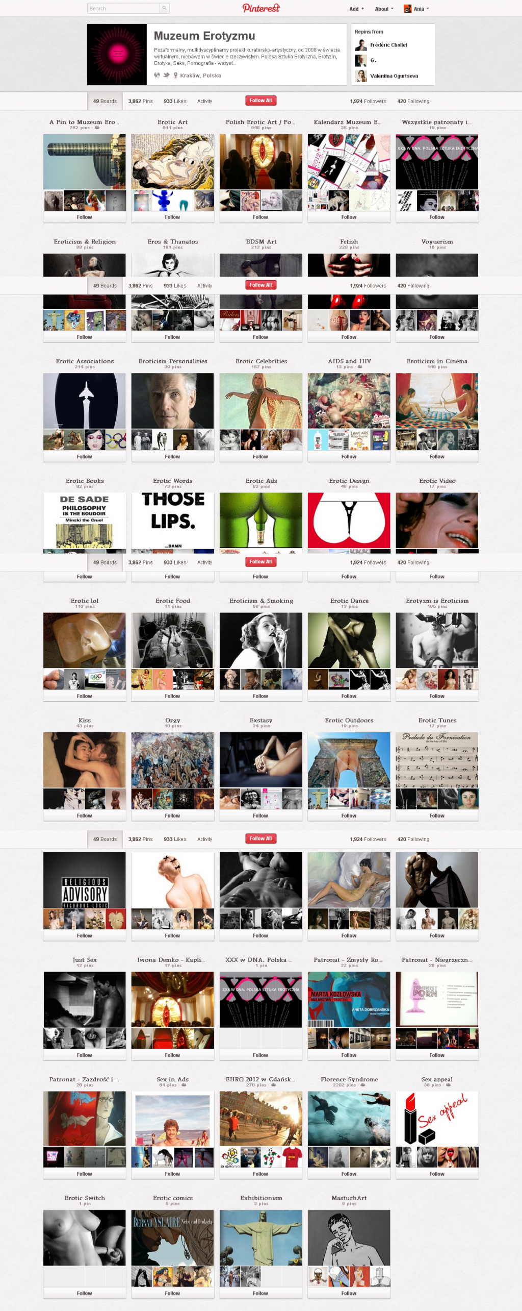 Najpopularniejsze obecnie polskie konto w serwisie Pinterest to Muzeum Erotyzmu, którego case study opublikowaliśmy tu: