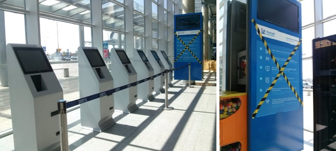Zdjęcie: Nieczynne stanowiska do samodzielnej odprawy; Źródło: Materiały własne