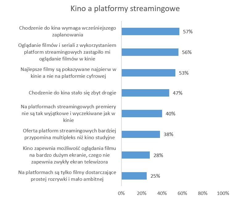 Również w mniejszości są osoby, które są zdania, że oferta platform streamingowych bardziej przypomina ofertę multipleksów niż kin studyjnych czy też, że na platformach znaleźć można wyłącznie filmy dostarczające prostej, mało ambitnej rozrywki.