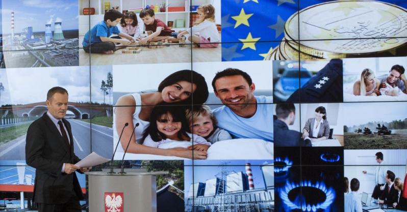 Na początek sprawdźmy, czy naprawdę nas oszukali. Premier miał mieć konferencję o rodzinie i w związku z tym jego współpracownicy przygotowali odpowiednie tło zdjęciowe. Spójrzmy na nie: