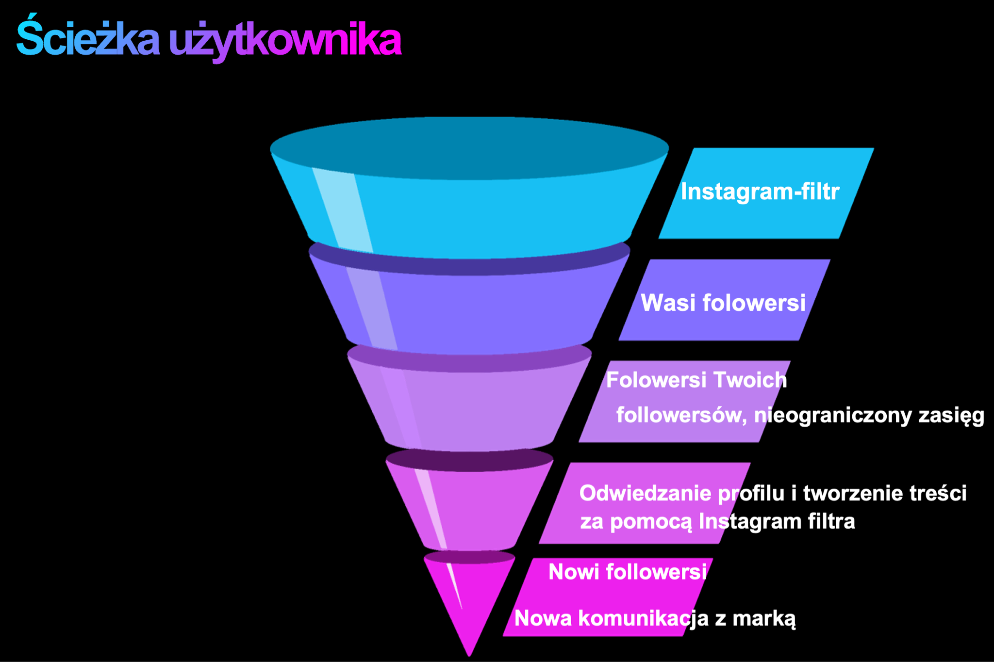 Efekt UGC zaczyna się po dodaniu filtru na konto marki. Brand tworzy pierwszą relację z wykorzystaniem filtra i informacją o jego premierze, którą zobaczą wszyscy jego fani. Następnie odbiorcy sami tworzą kolejne treści z użyciem filtra i udostępniają wśród swoich znajomych i fanów. Dzięki temu można szybko osiągnąć efekt śnieżnej kuli, a filtr staje się viralem. Każdy użytkownik, który go wykorzysta, staje się ambasadorem marki, a tych potencjalnych jest na Instagramie ponad 500 milionów.