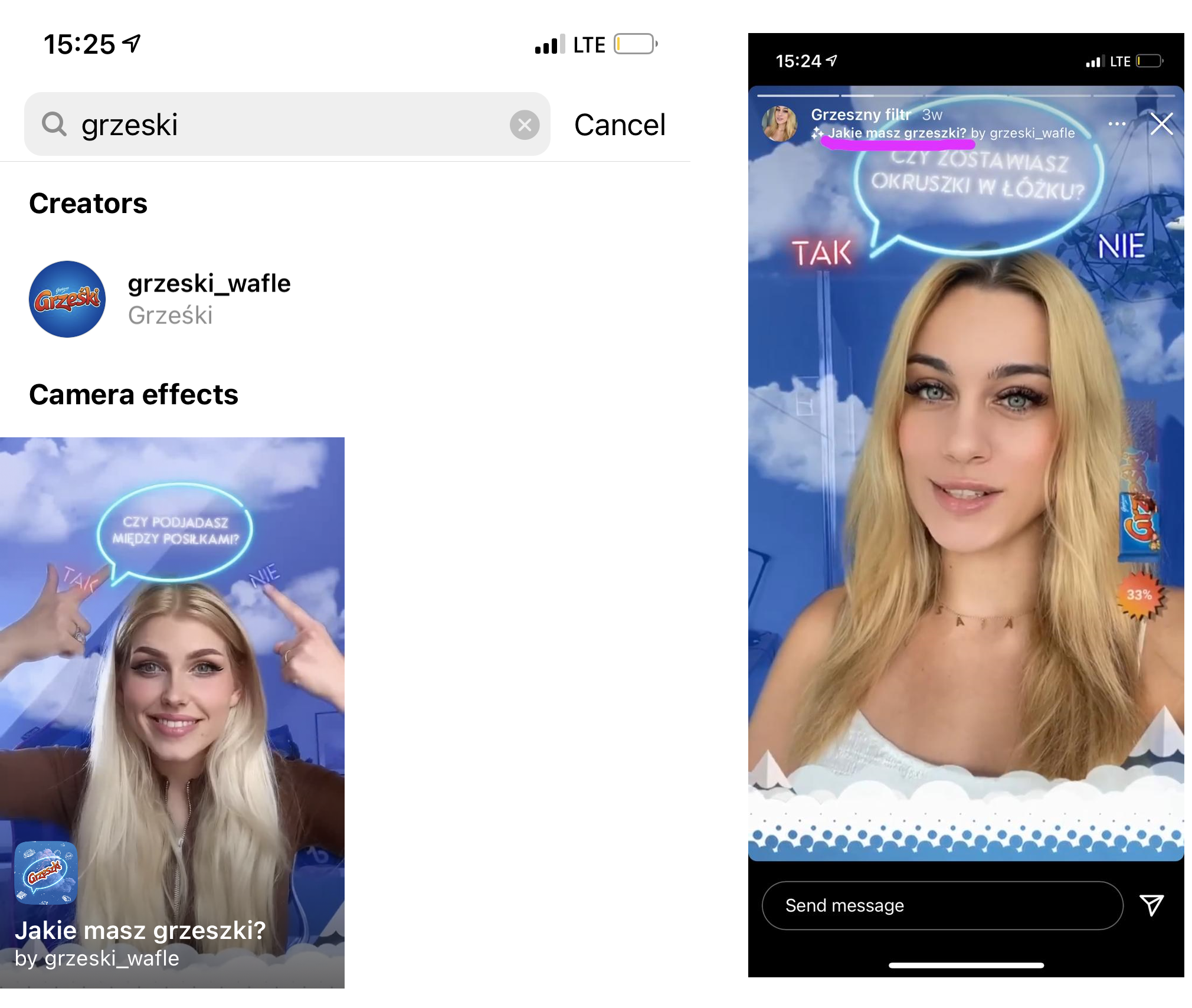 Ważne jest także to, że to sami użytkownicy, wykorzystując filtry, tworzą content i go dalej udostępniają (user generated content). Aż 90% konsumentów ufa treściom związanym z marką, jeśli są tworzone przez innego użytkownika. Ludzie mają tendencję do zapamiętywania nowych lub pozytywnych doświadczeń, więc zapisują ciekawe filtry na swoim koncie i chętnie dzielą się nimi z przyjaciółmi.