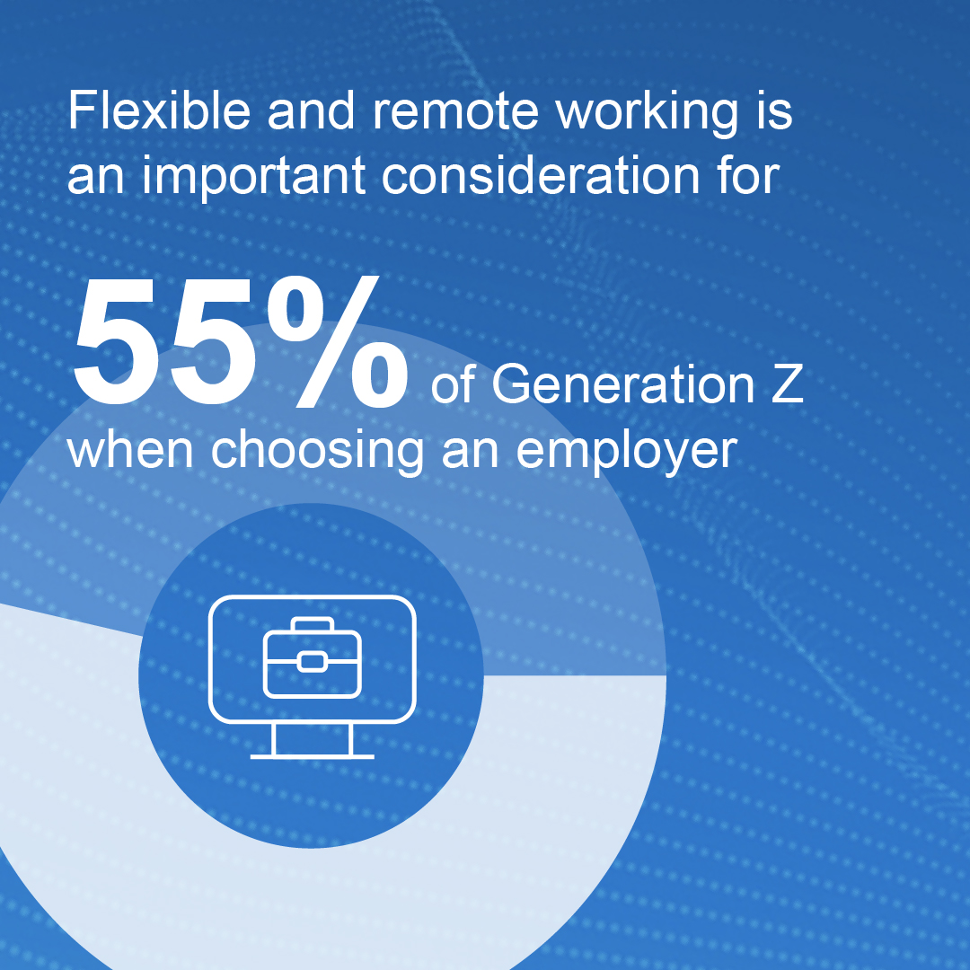Ponad połowa (55%) przedstawicieli pokolenia Z wskazuje możliwość elastycznej i zdalnej pracy jako ważny czynnik, którym kieruje się przy wyborze pracodawcy
