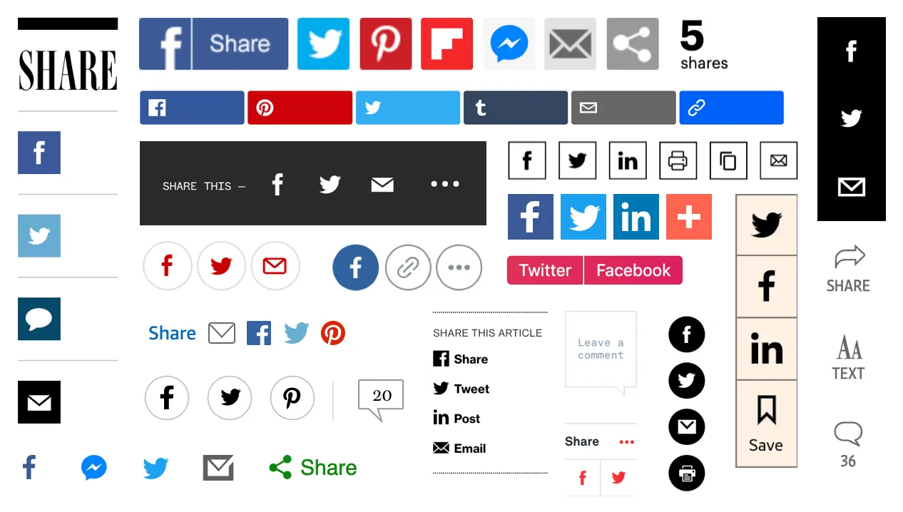 Efekt? Oto zbiór przycisków do udostępniania treści w mediach społecznościowych pochodzących z tytułów jednego wydawnictwa: