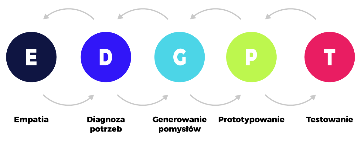 Przyjęło się mówić, że DT to metoda do projektowania innowacji, co od razu przywodzi nam na myśl nowoczesne technologie, duże koszty, niesamowite nakłady pracy, jakie trzeba włożyć w projekt. Z tego powodu niektórzy podchodzą do metodologii bardzo nieufnie, a szkoda, bo elementy DT można z powodzeniem stosować w codziennej pracy. Proces projektowy można z powodzeniem dostosować do aktualnych potrzeb i zrealizować go w przeciągu jednego intensywnego dnia lub rozłożyć nawet na 6 miesięcy.