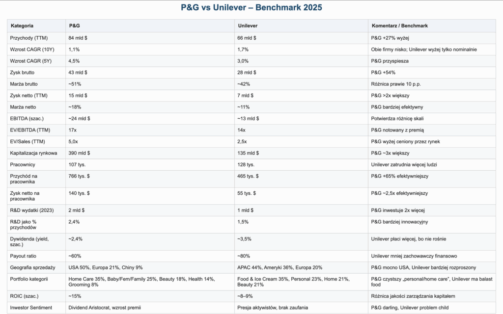 Podsumowując: dziesięć lat, które można było wykorzystać na rywalizację z P&G o marże, ROIC i globalny zasięg, spalono na manifesty. P&G liczył marże. Unilever liczył gołębie na slajdach. Teraz, w „post-purpose”, wraca do rzeczywistości – pytanie tylko, ile jeszcze potrwa odrabianie strat.