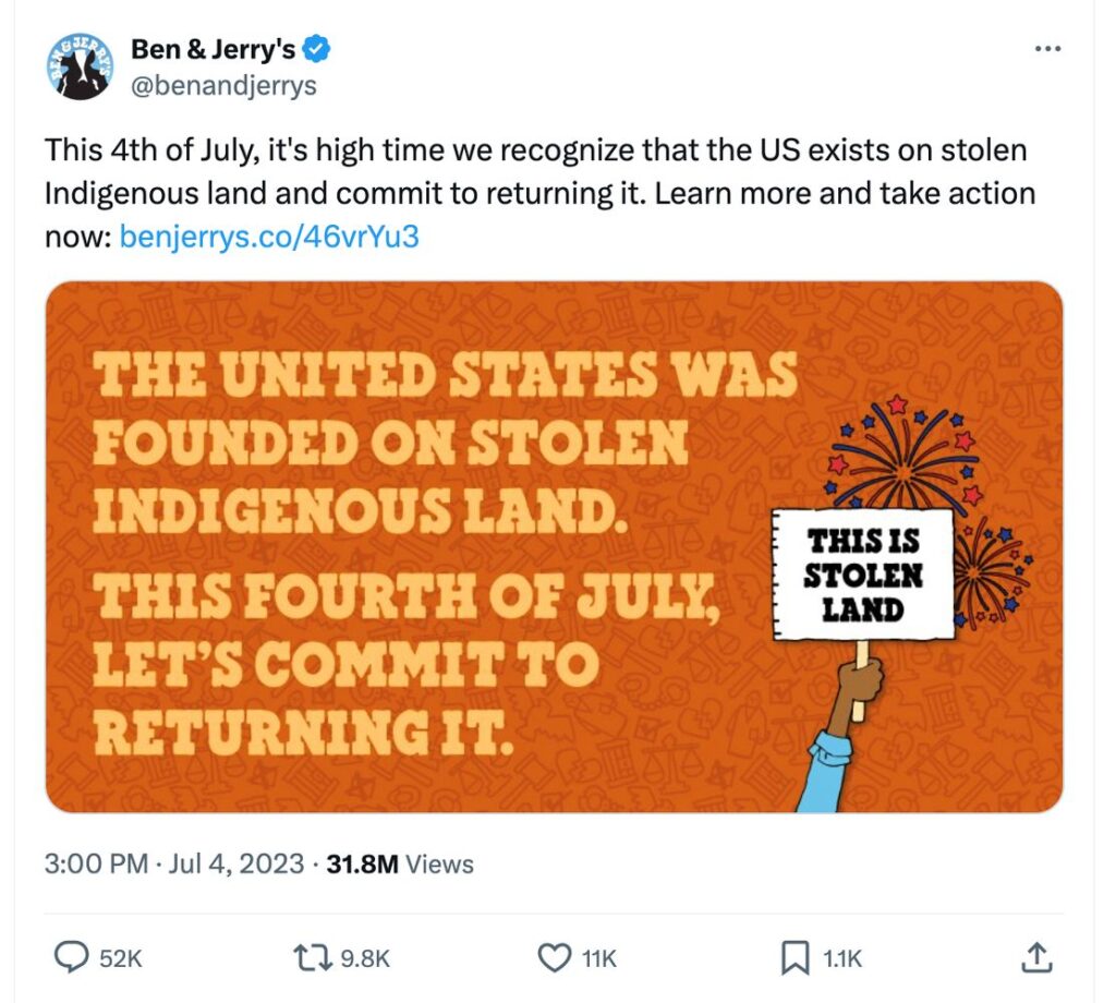Ben & Jerry’s od lat próbuje pełnić rolę moralnego sumienia Ameryki. Kulminacja przyszła 4 lipca 2023 r., gdy marka ogłosiła w mediach społecznościowych, że Stany Zjednoczone zostały założone na „skradzionej ziemi rdzennych ludów”. Reakcja była natychmiastowa: wezwania do bojkotu, medialne burze, a kilka serwisów podało, że w kolejnych dniach kapitalizacja Unilevera spadła o ok. 2–2,5 mld USD. Ruchy giełdowe zawsze mają wiele przyczyn, ale korelacja wystarczyła, by trafić na nagłówki. Rachunek za moralne popisy został wystawiony akcjonariuszom, którzy być może woleliby po prostu zobaczyć, że majonez i lody sprzedają się lepiej.