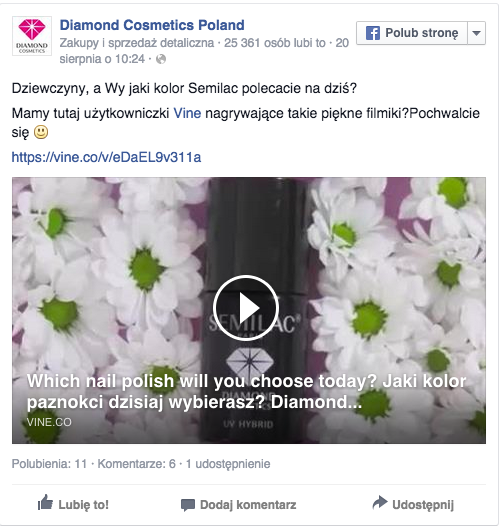 W większości firm sezon wakacyjny wiąże się ze spowolnieniem pracy. Dla Diamond sierpień był bardzo pracowity, bo właśnie wtedy firma wystartowała z pierwszą w Polsce kampanią wizerunkową swojego produktu, lakieru hybrydowego Semilac, na Vine i zaangażowała do tego influencerów. Do współpracy zaproszono trzy wajnerki, które swoim contentem docierają do różnych grup docelowych: Kasię Ogórek, Aleksandrę Foryś oraz Elwirę Rogoda.