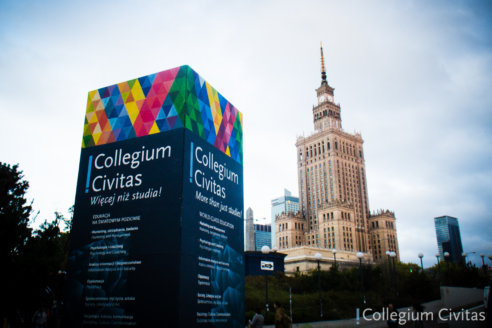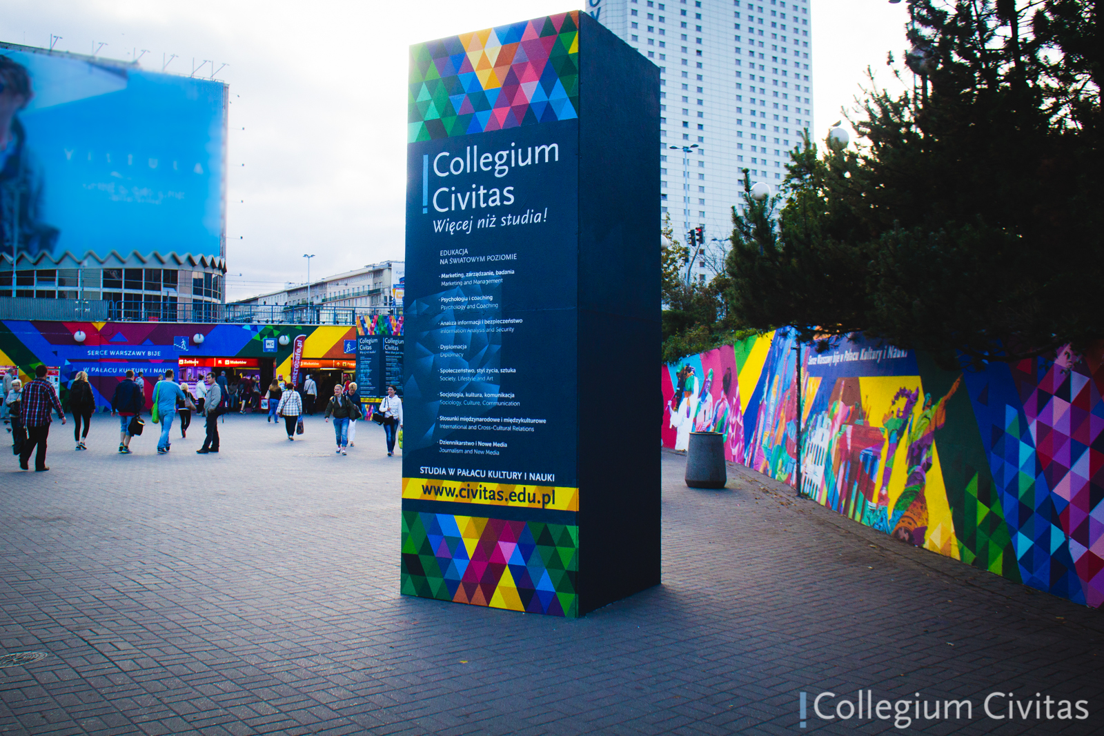 Artystycznym muralem Collegium Civitas chce zwrócić uwagę, na to jak wielki postęp dokonał się w polskim systemie edukacji wyższej w ostatnich dwóch dekadach. Polskie uczelnie włączyły się w światowy nurt nauki i zaczynają być jego równoprawnym uczestnikiem. Collegium Civitas jest jednym z głównych liderów umiędzynarodowienia nauczania – nie tylko przyciąga wybitnych wykładowców z całego świata, ale też studentów. Warszawa i Pałac Kultury i Nauki stały się rozpoznawalnym symbolem edukacji dla studentów w wielu krajach w Europie i na świecie, a Collegium Civitas stanowi miejsce spotkań intelektualnych – otwartych seminariów naukowych, konferencji i wystaw dla uczestników z całego świata.