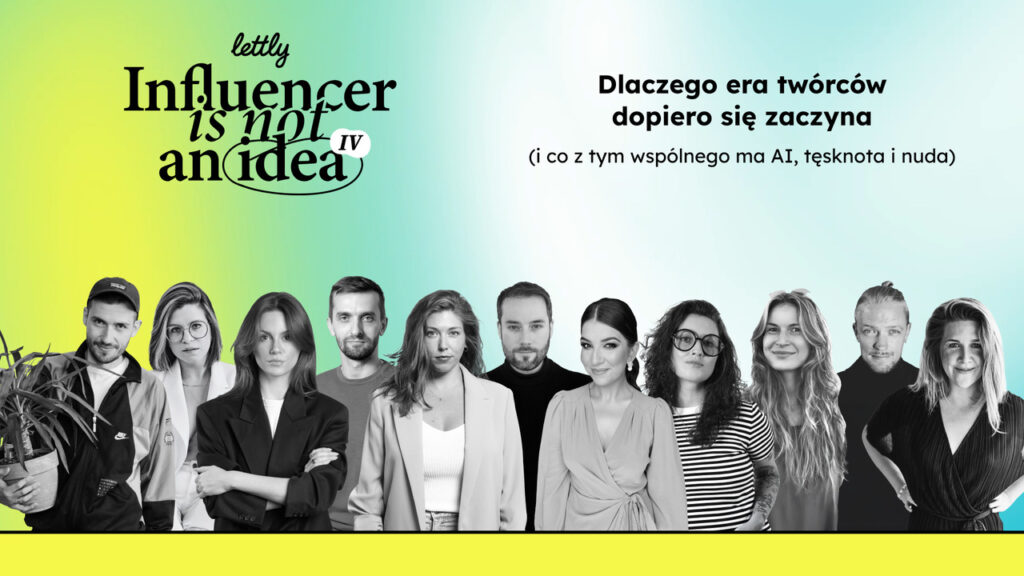 Lettly – agencja strategiczna influencer marketingu, która od ponad dekady pomaga markom tworzyć kampanie, które przynoszą wymierne efekty. Influencer Is Not An Idea to więcej niż konferencja — to filozofia Lettly. Bo influencer marketing to przemyślana strategia, zaufanie i świadome partnerstwo. Pracowali dla takich firm jak adidas, Danone, Zalando, Wedel, Żywiec Zdrój, Unilever czy i Rak’n’Roll.