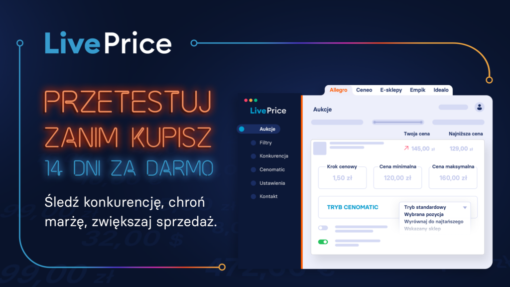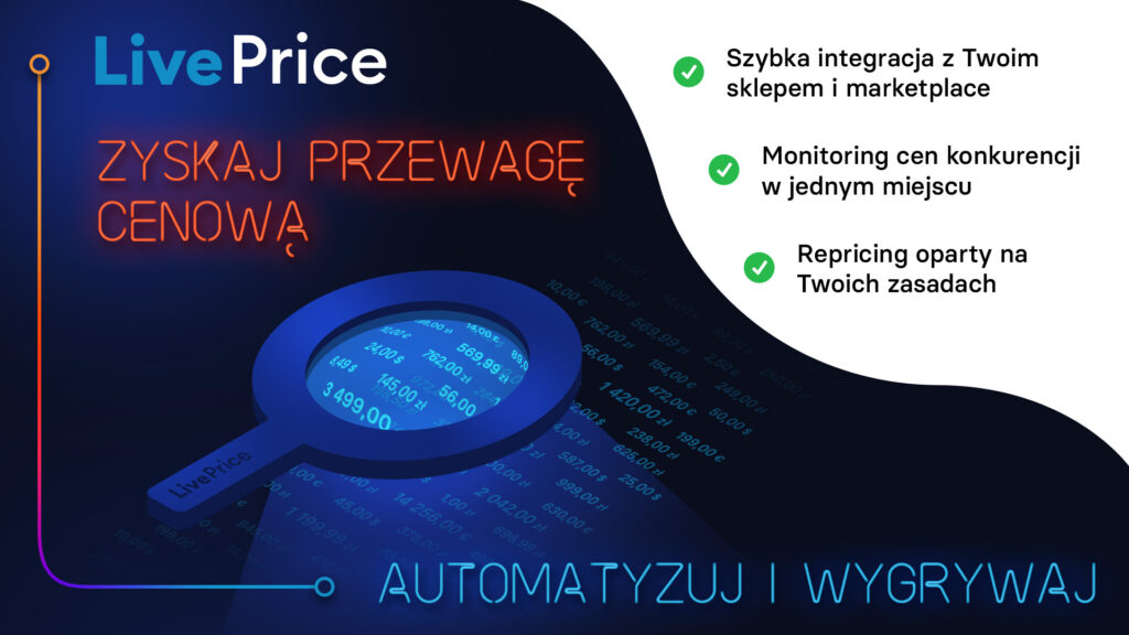 Rozwiązania takie jak LivePrice łączą monitoring cen z ich automatyzacją. Dane z marketplace’ów, porównywarek i sklepów internetowych są agregowane i przypisywane do konkretnych produktów, co pozwala zobaczyć rzeczywisty obraz konkurencji.
