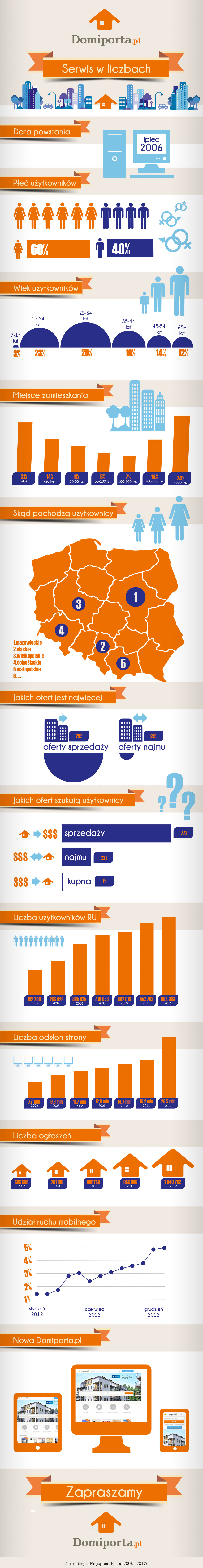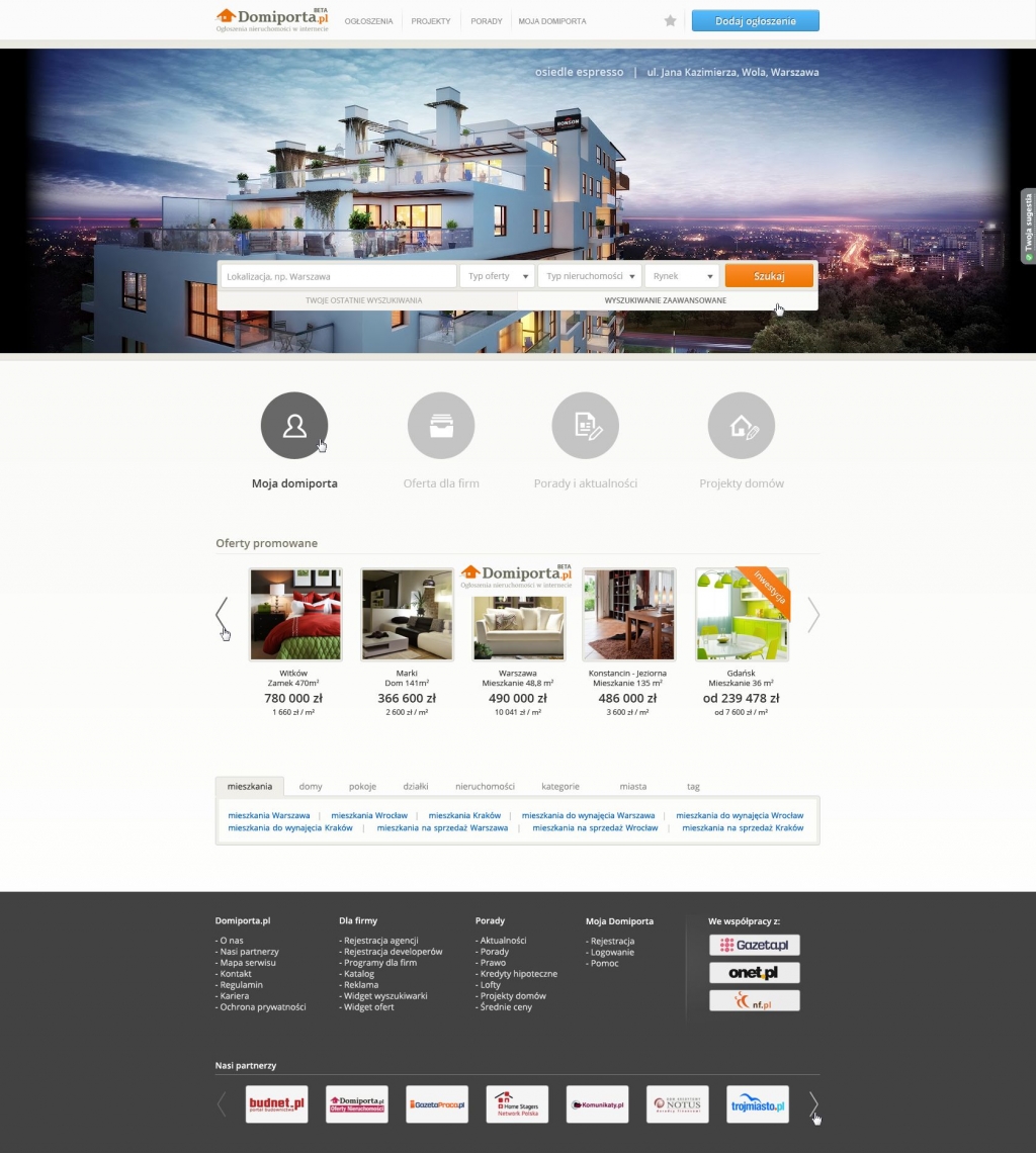 Postanowiliśmy umożliwić wyszukiwanie nieruchomości w serwisie Domiporta.pl osobom korzystającym nie tylko z komputerów stacjonarnych czy laptopów, ale też z urządzeń mobilnych, tabletów, smartfonów. Obecnie ponad 5% osób szukających nieruchomości na Domiporta.pl korzysta z urządzeń mobilnych. W ciągu ostatniego roku ilość takich osób zwiększyła się kilkukrotnie, a spodziewamy się, że w przeciągu najbliższych dwóch lat połowa użytkowników serwisu będzie korzystać z niego za pośrednictwem tabletów i smartfonów. Dlatego też podjęliśmy decyzję o zastosowaniu technologii Responsive Web Design (RWD). Nowa odsłona Domiporta.pl jest pierwszym serwisem nieruchomości w Polsce, który zaprojektowaliśmy myśląc przede wszystkim o użytkownikach urządzeń mobilnych (mobile first) – wyjaśnia Krzyszof Kowalkowski, Kierownik Zespołu Projektantów serwisu Domiporta.pl.