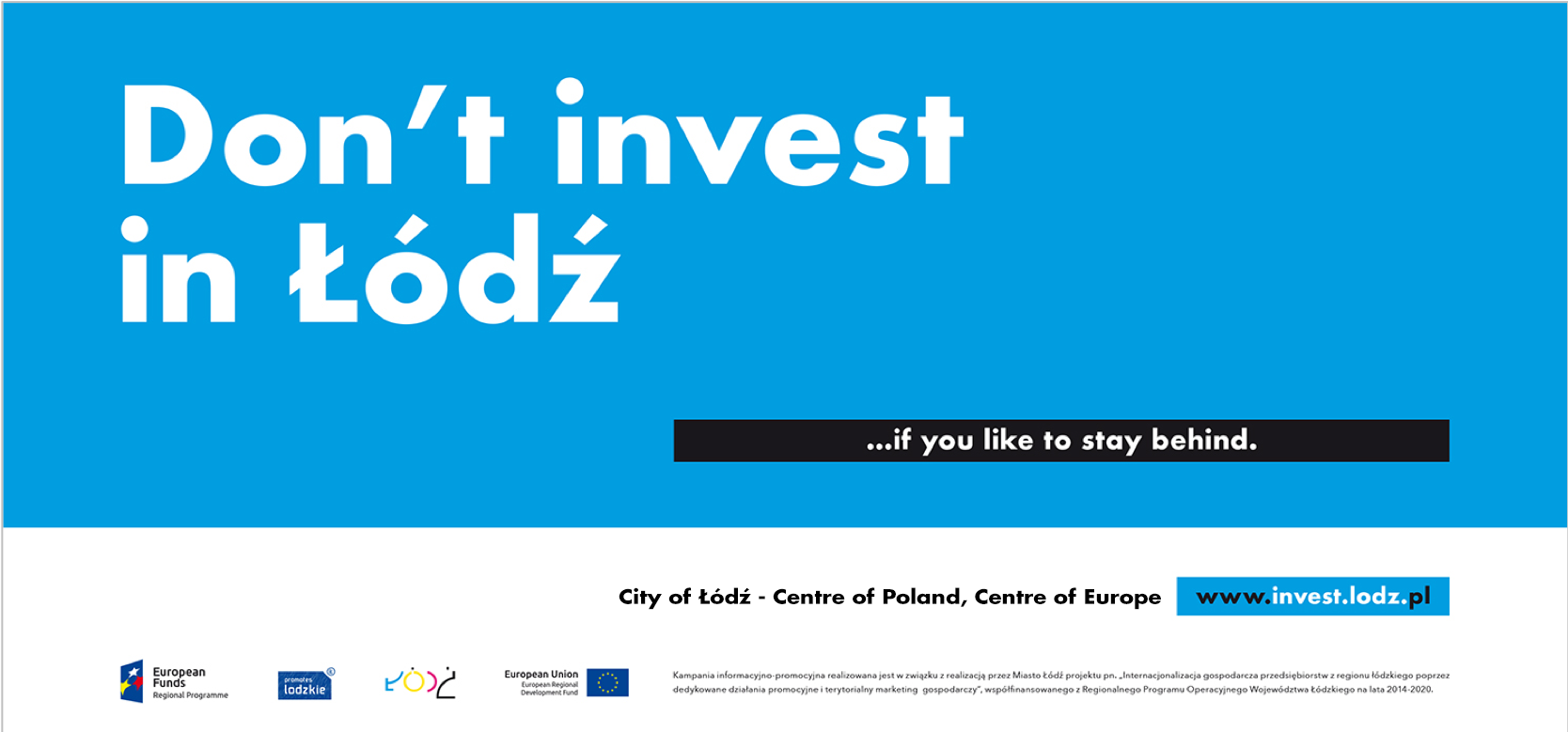 Ruszyła nowa, odważna kampania miasta Łódź, pod hasłem „Don’t invest in Łódź”. Ma ona na celu zwrócenie uwagi zagranicznych inwestorów na atuty Łodzi jako miasta kreatywnego, o dużym potencjale gospodarczym i bogatej ofercie biznesowej.