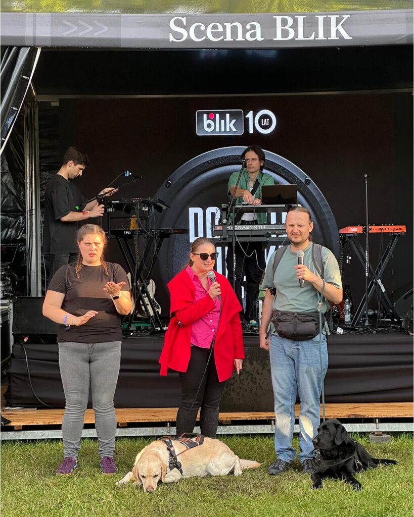 Dlatego informowaliśmy o udogodnieniach w jasnych oraz zróżnicowanych formatach (strona internetowa, aplikacja), a na terenie wydarzenia znalazły się czytelne oznaczenia, wejścia bez barier, wygodne sektory dla osób poruszających się na wózkach, ciche zakątki dla tych, którzy potrzebują chwili spokoju, a także dostosowane toalety. Sama przestrzeń festiwalu – dobrze skomunikowana, równa i utwardzona – umożliwiała swobodne poruszanie się. Osoby z niepełnosprawnościami mogły wejść na festiwal wraz z opiekunem, który korzystał ze wstępu bezpłatnie.
