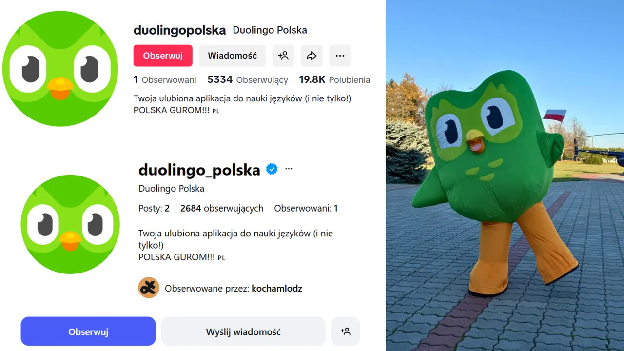 Realizacją działań na Instagramie i TikToku Duolingo w Polsce zajmuje się Grupa Kreatywna Cukier.
