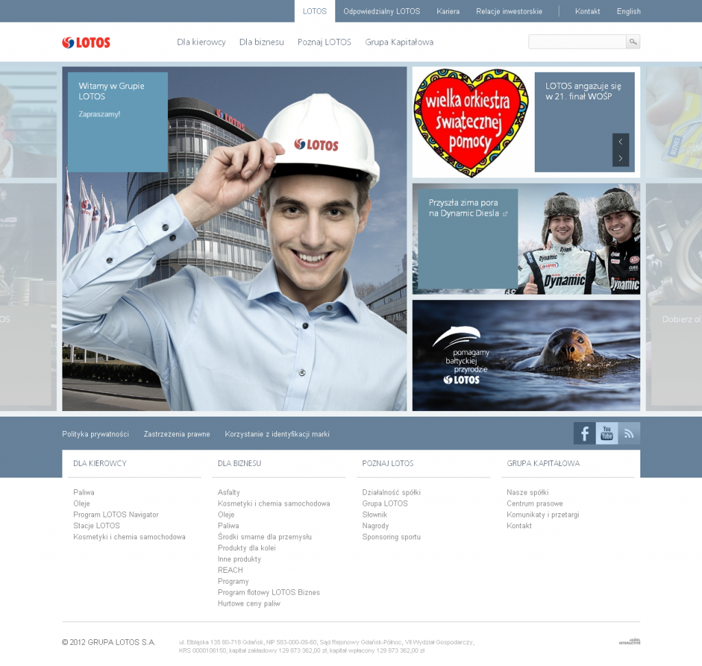 – Nowy serwis Grupy Lotos to wyzwanie z punktu widzenia właściwego przygotowania jego architektury, zwłaszcza że analiza istniejącej strony wykazała, iż użytkownicy stosunkowo długo szukają konkretnej treści – mówi Marcin Niewiadomski, creative director w agencji Jamel Interactive, która była odpowiedzialna za projekt i wykonanie nowego serwisu. – Grupa LOTOS jest szóstą co do wielkości firmą Europy Środkowej, w związku z czym zainteresowanie stroną internetową ze strony inwestorów, przedstawicieli mediów i konsumentów detalicznych jest ogromne. Dlatego jednym z naszych priorytetów było uzyskanie wysokiej wydajności strony.