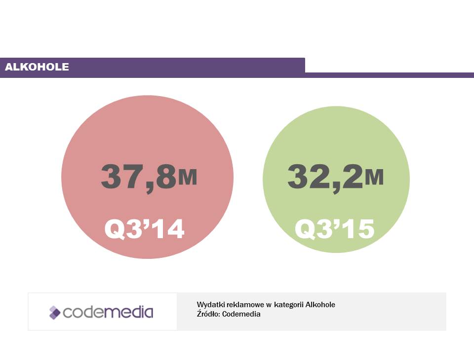 Szeroko pojęta branża alkoholowa w trzecim kwartale tego roku ulokowała w mediach ponad 32 miliony złotych, co stanowiło 14% wszystkich wydatków promocyjnych w całej kategorii. Przy jednoczesnym spadku na poziomie 15% w stosunku do poprzedniego roku. Największą część budżetu marek alkoholowych przypadło tradycyjnie na reklamę piwa.