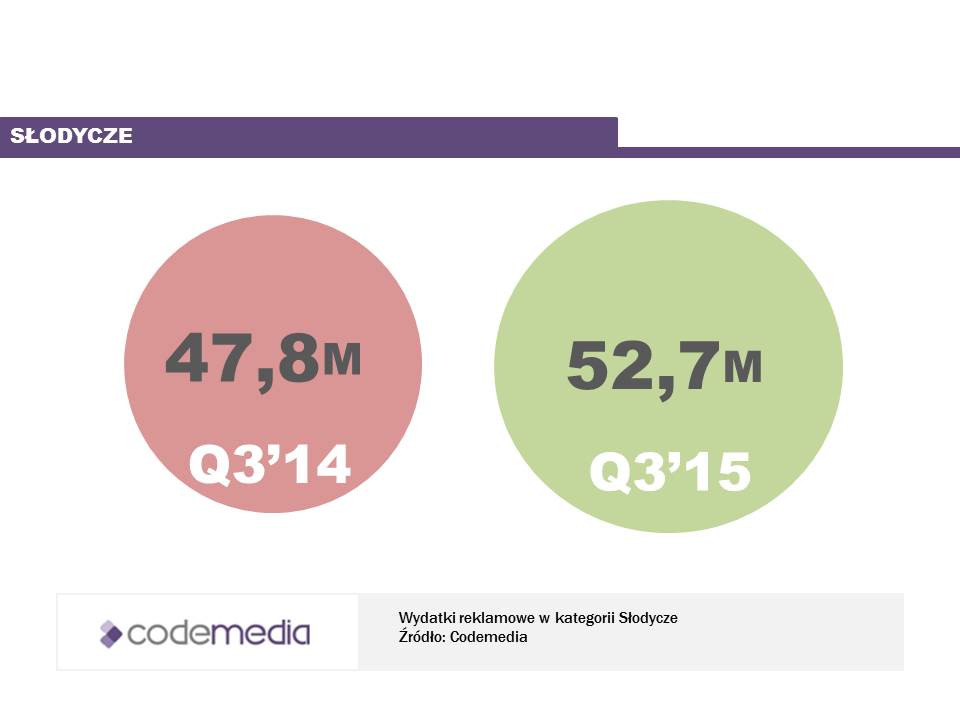 23% inwestycji sektora, z kwotą ponad 52 mln złotych, osiągnęli producenci słodyczy, notując 10% wzrost w porównaniu do trzeciego kwartału poprzedniego roku. Pomimo letniego okresu, producenci lodów nie byli liderem w wydatkach – najwięcej na promocję produktów w tej kategorii przeznaczyli producenci ciast, ciastek i batonów.
