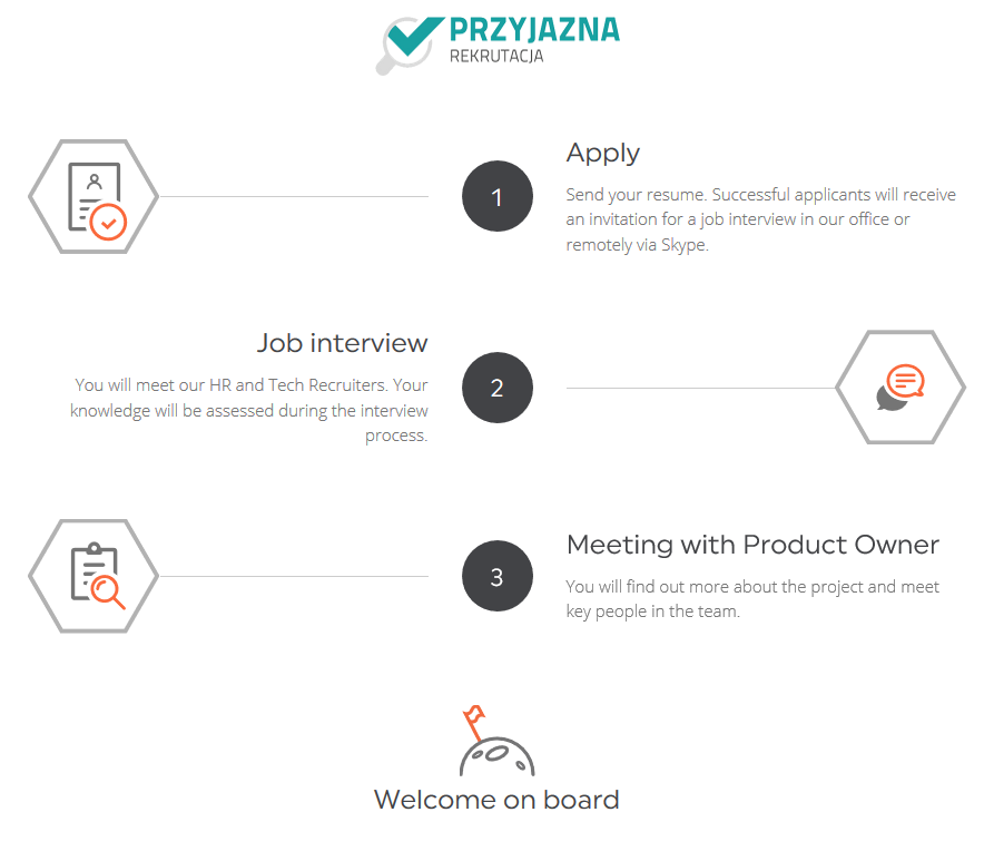 Proces rekrutacyjny w tej branży jest zwykle złożony, kilkuetapowy. Dlatego na stronie warto poinformować kandydata o tym, co go czeka już po zaproszeniu do udziału w rekrutacji. Jak? Najczytelniej – w postaci prostej infografiki. Tym bardziej, że aż 80% ludzi chętniej czyta informacje przedstawione wizualnie. Podobnie, w graficzny sposób, można przedstawić ścieżkę kariery. Pytania kandydatów na temat firmy i rekrutacji do niej można uprzedzić, zamieszczając na stronie również FAQ.