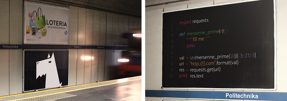 Świetnym przykładem dotarcia z komunikatem rekrutacyjnym w miejscu, w którym (dosłownie) przebywają programiści jest kampania DaftCode z 2015 roku. Minimalistyczny (a przez to tajemniczy i intrygujący) plakat przedstawiający psa z logo firmy pojawił się na stacji metra w pobliżu Politechniki Warszawskiej. Można przyjąć, że z tej stacji korzystają studenci kierunków informatycznych. Po dwóch tygodniach powieszono plakaty z fragmentem kodu – czyli czymś zrozumiałym tylko dla programistów. W kodzie ukryte było zadanie do rozwiązania. Według źródła, zadanie rekrutacyjne wykonało 50 osób, a 35 zostało zaproszonych do biura firmy. Tam zainteresowani otrzymali upominki i zapoznali się z działalnością DaftCode. Pięciu osobom zaproponowano współpracę. Koszt całej akcji był dużo niższy niż współpraca z agencją rekrutacyjną.